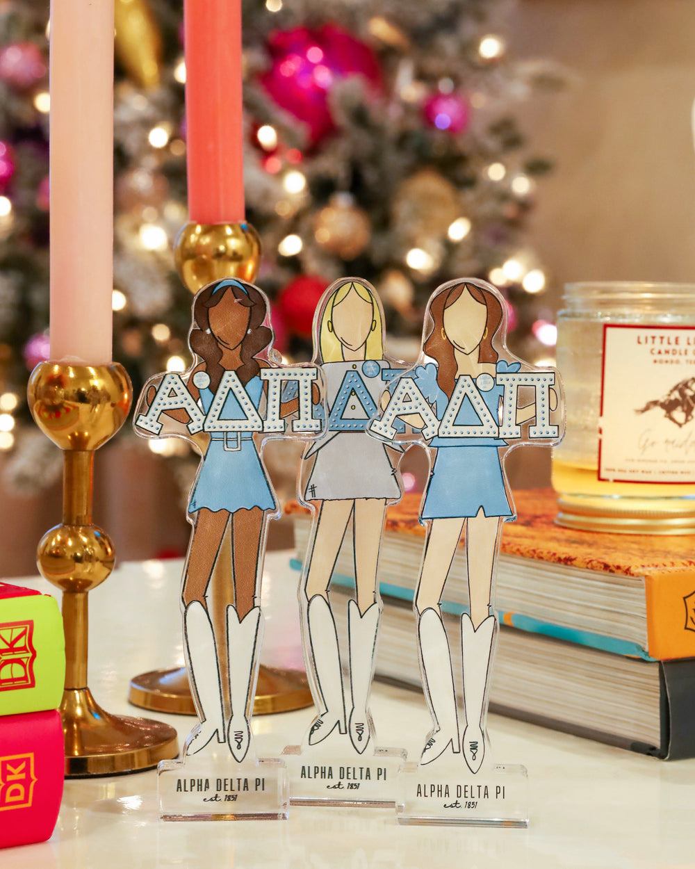 Say hello to your new fave acrylic shelfies! Whether displayed on a shelf, desk, or coffee table, these are a great way to show off your sisterhood!