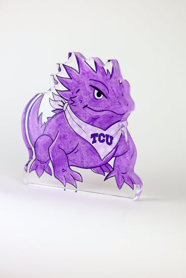 Show your TCU Horned Frog pride with this vibrant acrylic shelfie — the perfect piece of Texas Christian University decor for students, alumni, and fans alike. This premium acrylic art block features a bold Horned Frog design and adds a spirited touch to any dorm room, office, bookshelf, or mantle. Crafted to stand out, it’s a stylish and modern way to represent your love for TCU. Whether you’re gifting a fellow fan or treating yourself, this TCU shelfie is a must-have for game day displays or year-round Horned Frog home decor.