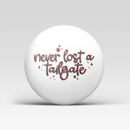 3" Pinback Button Never Lost a Tailgate